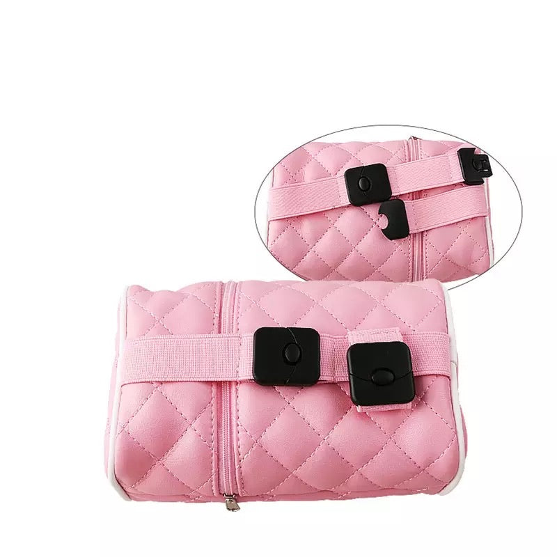 Beautiful baby pink quilted tissue holder! Just when you think your car accessories can't get any cuter!!! Clip this little babe to your visor and/or headrest.
