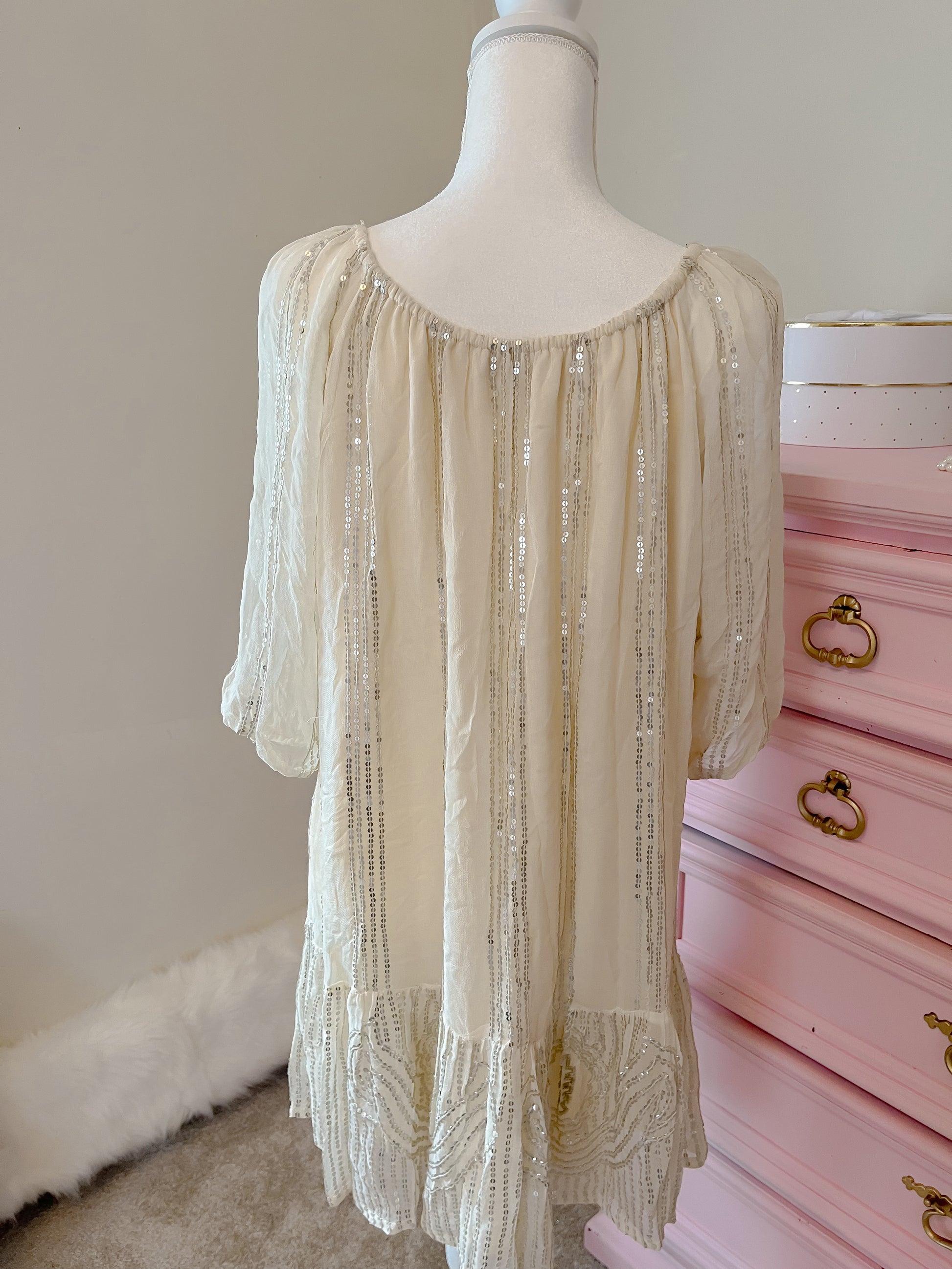 Beautiful cream color dress, good condition no rips. Above knee length, full length sleeves not cropped. Zip closure.