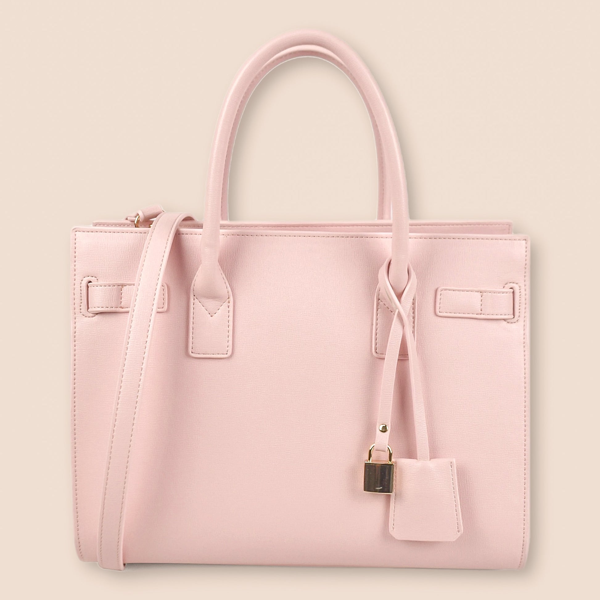 - Matching pink adjustable crossbody strap included