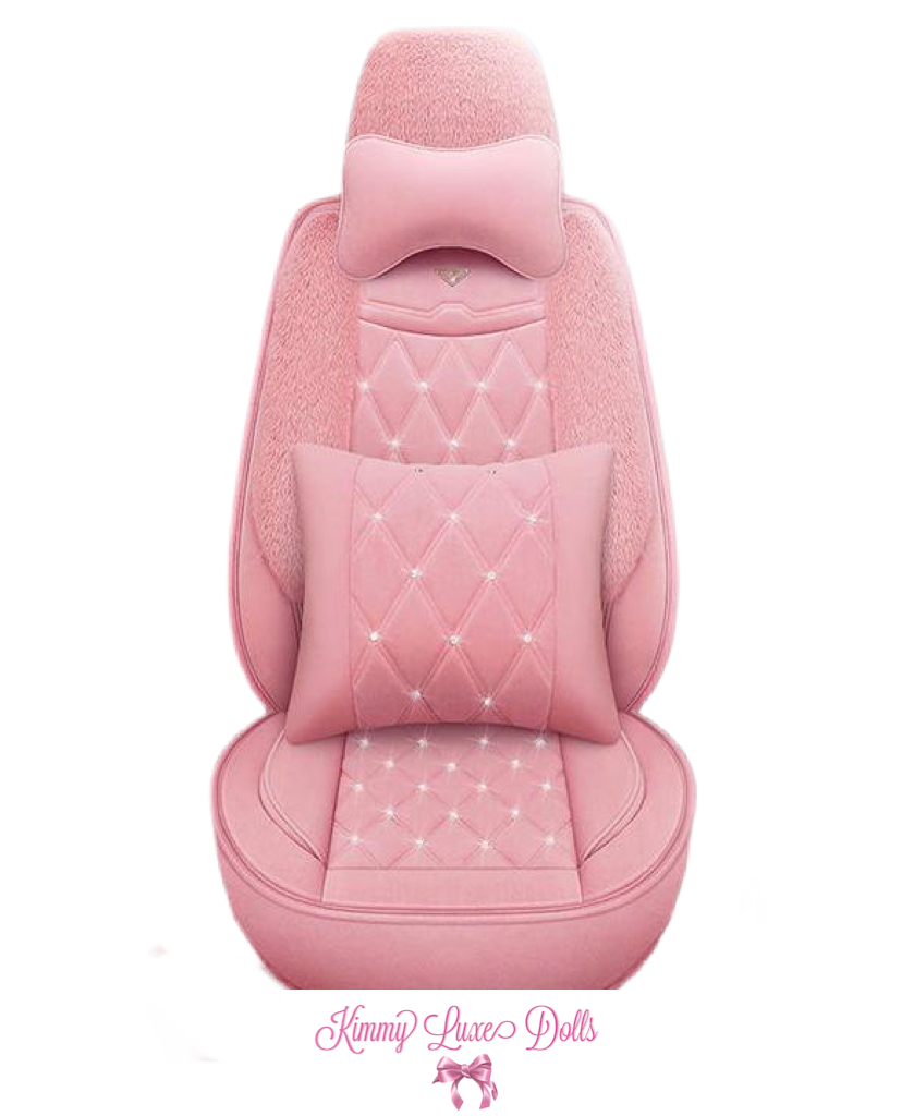 Ultra luxurious & plush baby pink car seat covers. These covers are one of a kind and custom made to fit your car! Pillows included in this set to not only add extra sparkle but exceptional comfort!