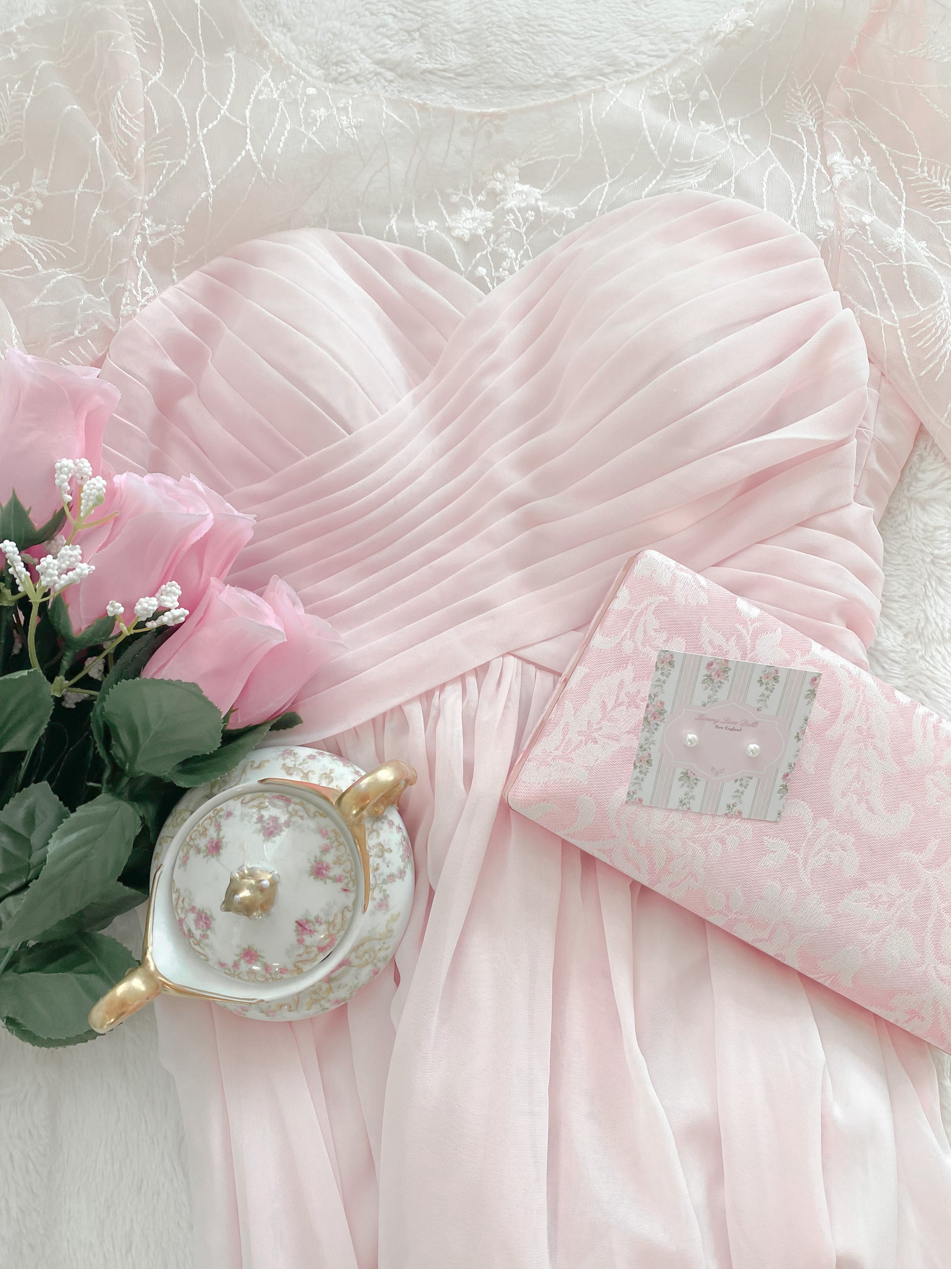 Set includes faux rose bouquet, perfect for Instagram photo prop!
